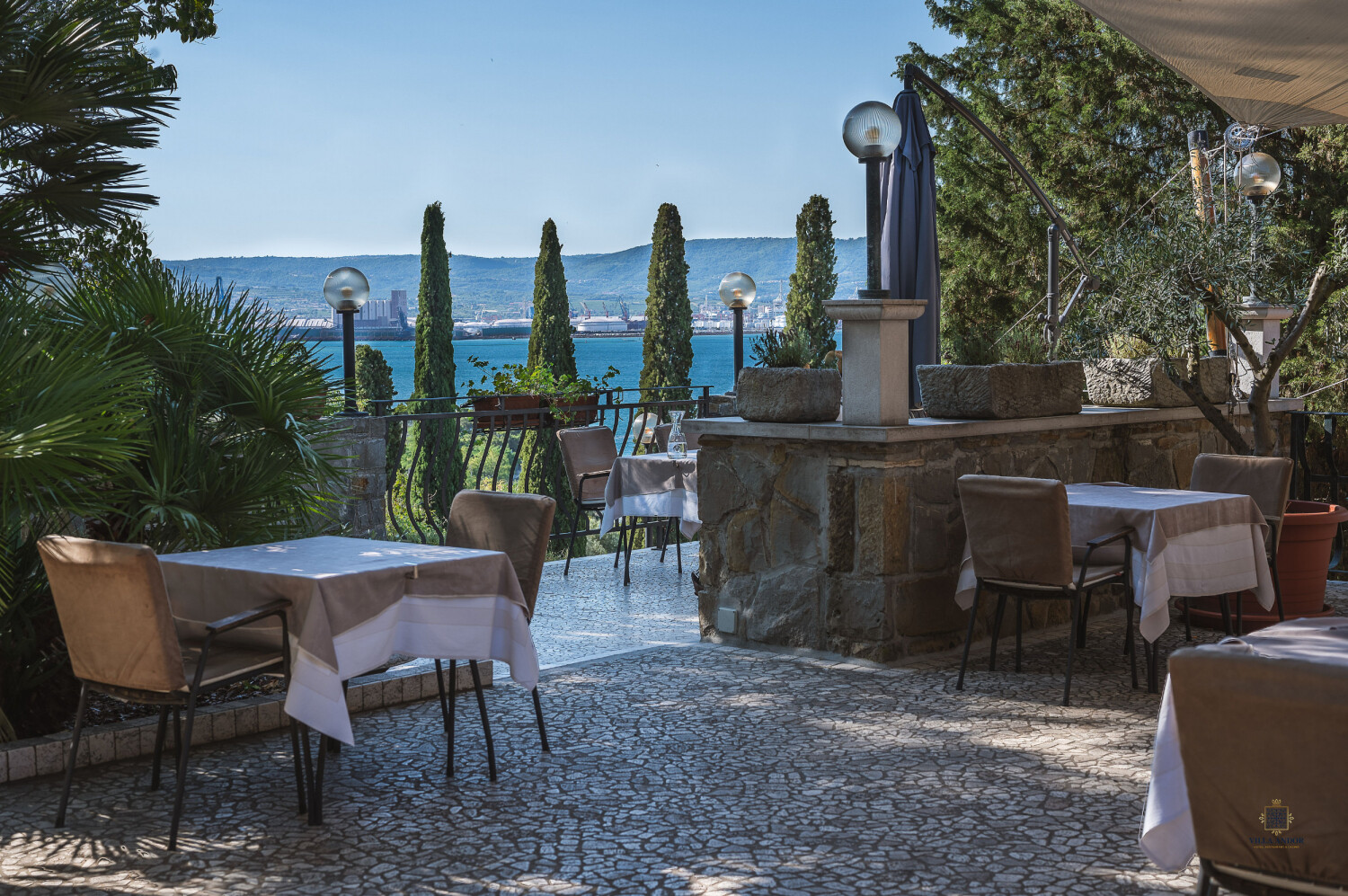 ” Il ristorante nella villa centenaria offre un ambiente lussuoso e serve piatti mediterranei di alta qualità. Il nostro menu comprende pesce fresco e tutto ciò che ha un tocco della vicina cucina italiana. Forniamo i migliori ingredienti e ci prendiamo cura della preparazione eccellente, e oltre a tutto questo vi serviamo anche un’ampia scelta di vini e altre bevande. In estate potrete vivere il momento clou della nostra offerta sulla terrazza, che non vi lascerà indifferenti.”