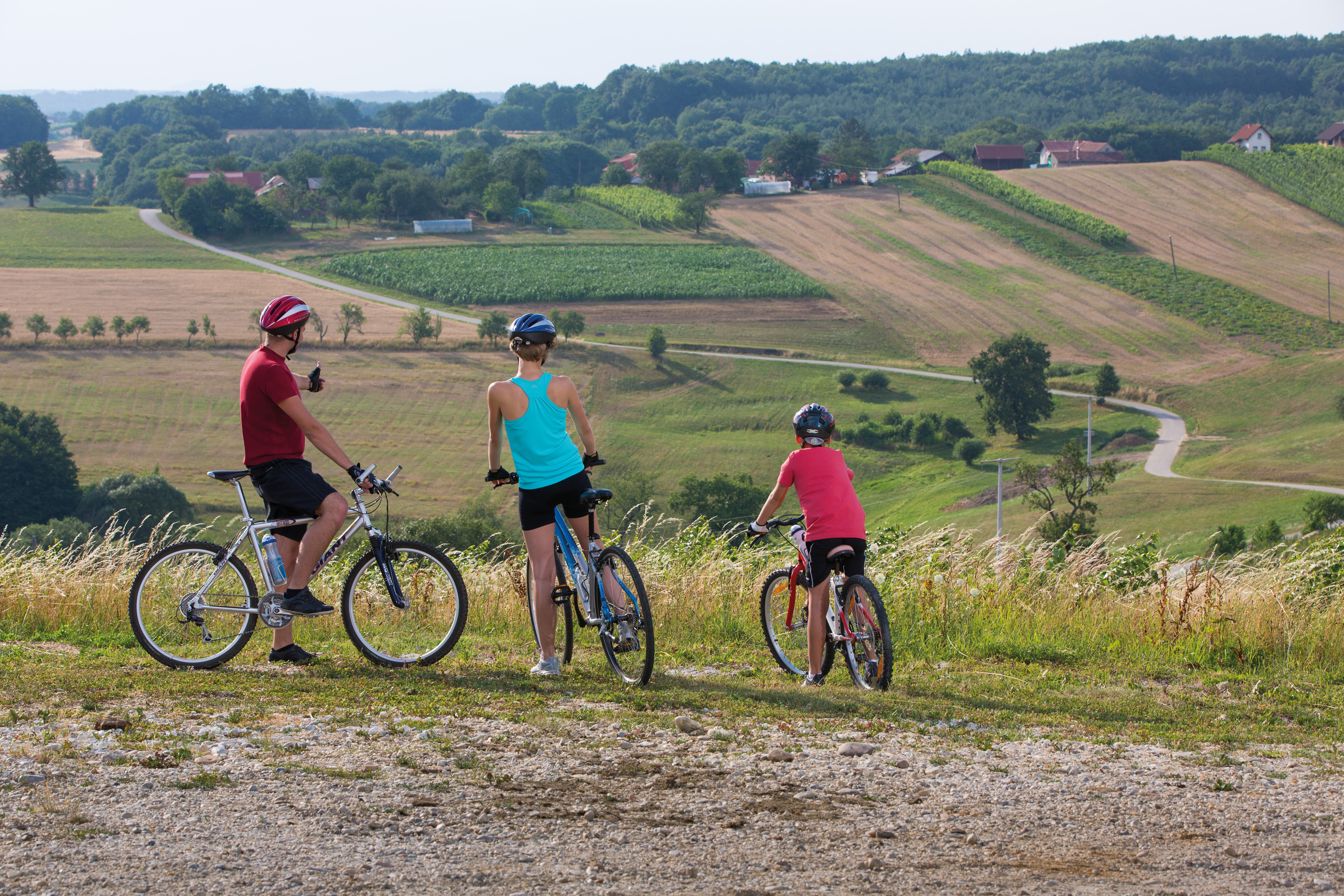I percorsi di lunghezze e difficoltà diverse si snodano per la pianura o salgono tra i verdi vigneti, fino all’idilliaco Goričko.